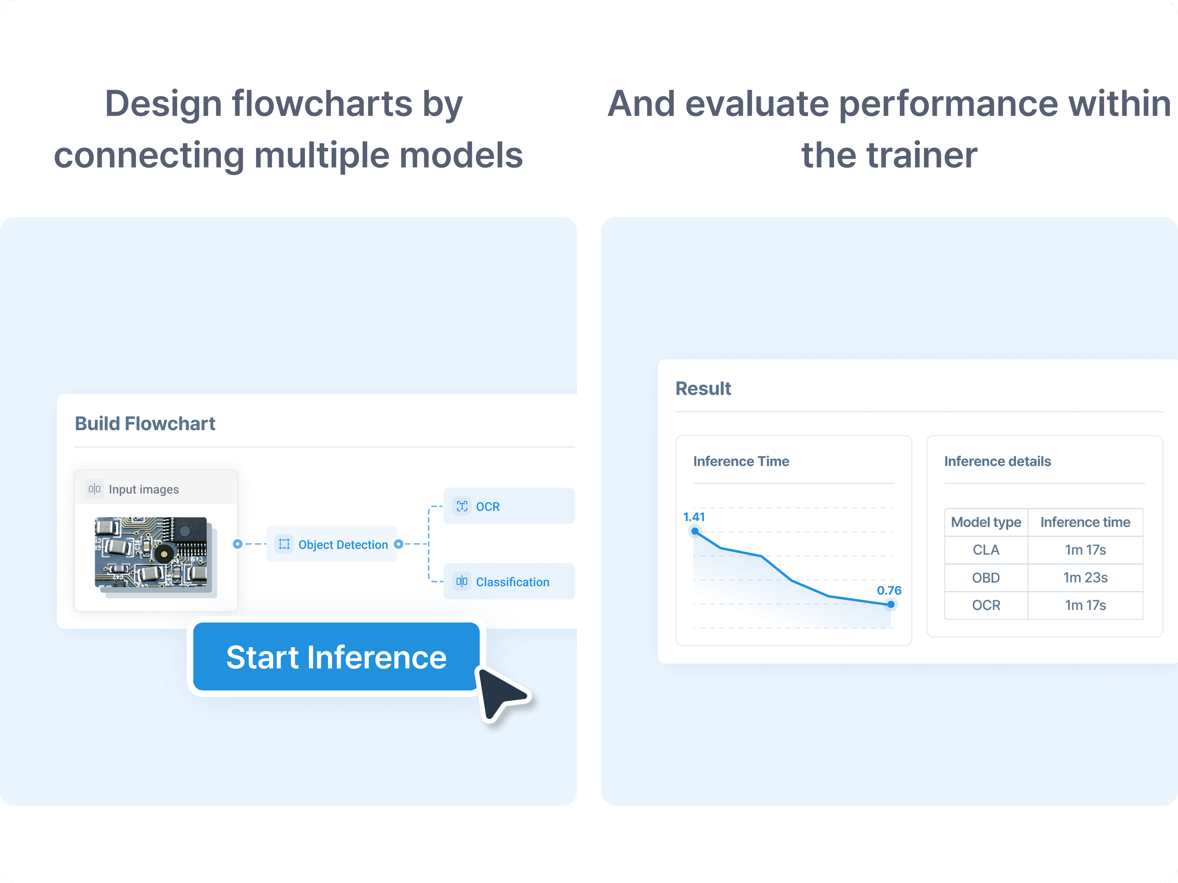 Tackle complex projects by connecting multiple models and review them within the trainer prior to deployment.