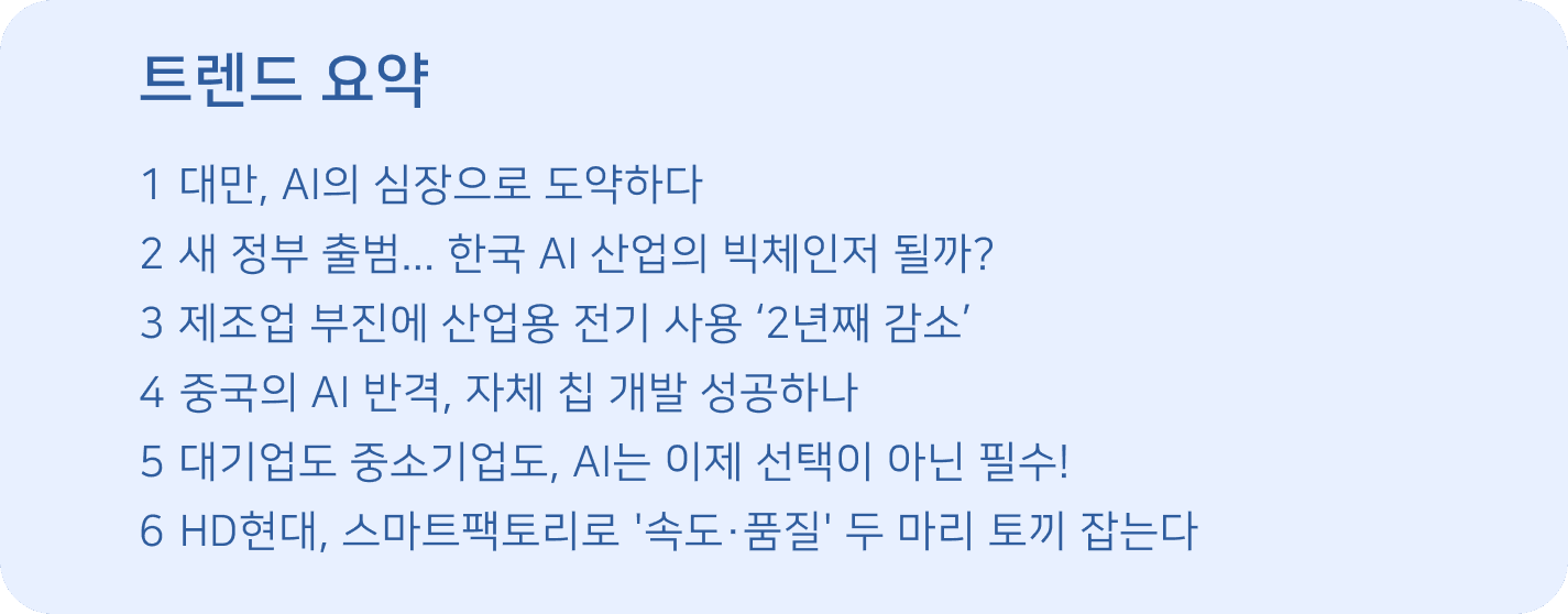 5월 트렌드- AI, 제조업의 새로운 생존 방식이 되다 (제조AI / 중국반도체 / 스마트 팩토리)